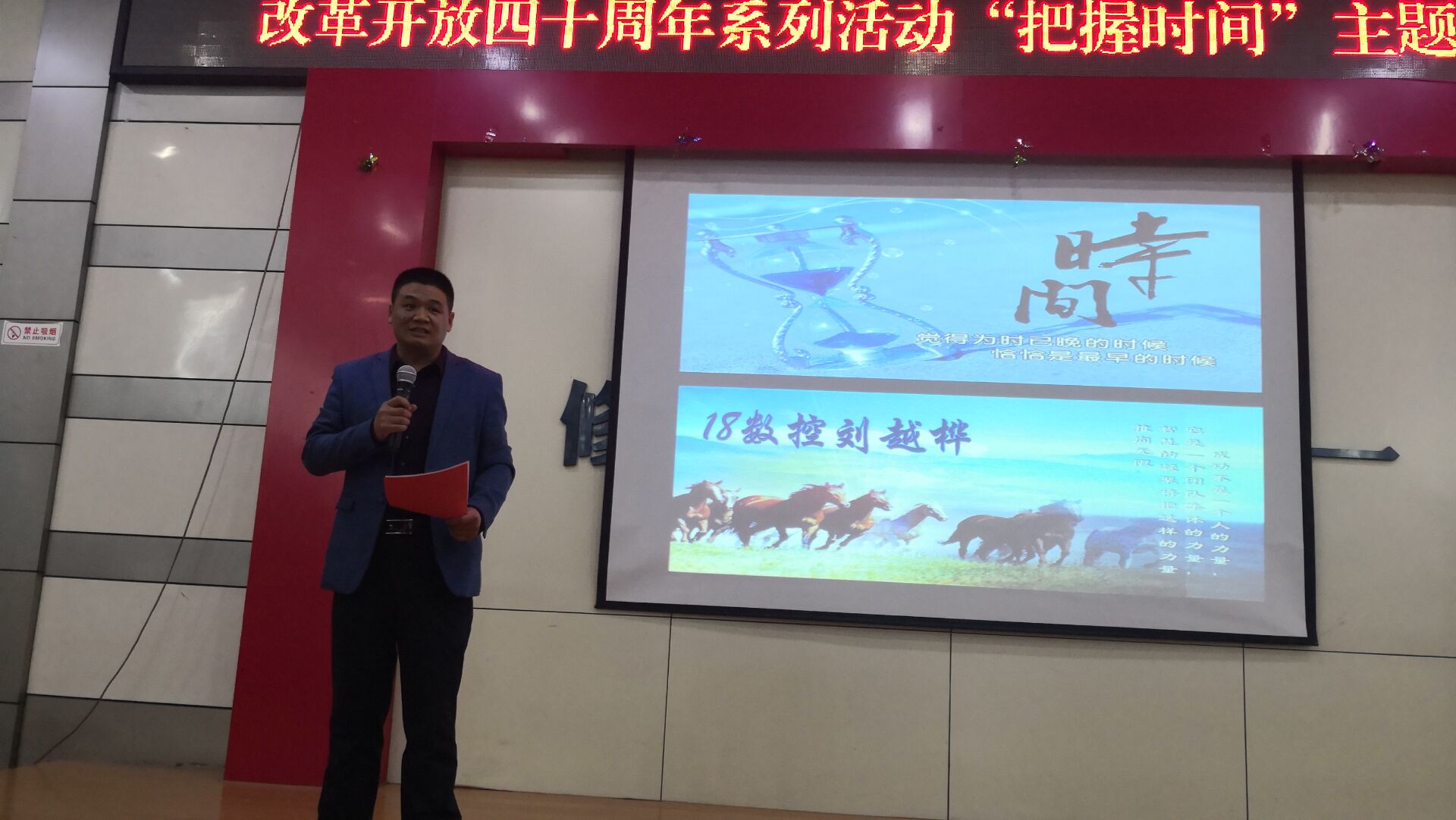 时光匆匆,人生短暂。每个人都需要在短暂的时间里发挥自己最大的价值。每个人都是时间的主导者,把握时间就是自己最大的肯定。为了能使当代老员工更好的分配时间,合理利用时间,举办了这次活动。活动开始由机电工程学院团总支书记许卫华上台讲话,许卫华书记发言完毕后开始比赛。优美的声音,激昂的语调,流畅的普通话,把现场的气氛一次又一次的推向了高潮,在场的评委,观众享受着这一视听盛宴。比赛结束后张志军以9.68分拿下一等奖拿下本场演讲比赛的冠军。二等奖是王长芳和张齐齐两人分别取得9.22,9.25的优异成绩取得本场比赛的二等奖。三等奖获得者是田润东,王数,刘越华。比赛结束后机电工程学院团总支书记许卫华上台点评后,由机电工程学院老员工艺术团带来的吉他弹唱结束了本场活动。