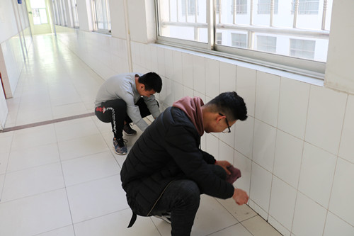 我系团支部、 员工会的同学们和 17级辅导员参与本次活动。 在员工会主席李亮亮的带领下拿着各种清扫工具来