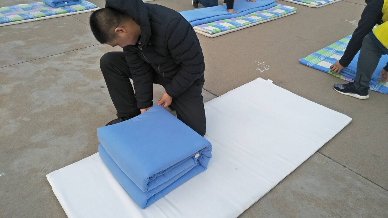 辅导员许卫华老师深入到活动中进行叠被展示